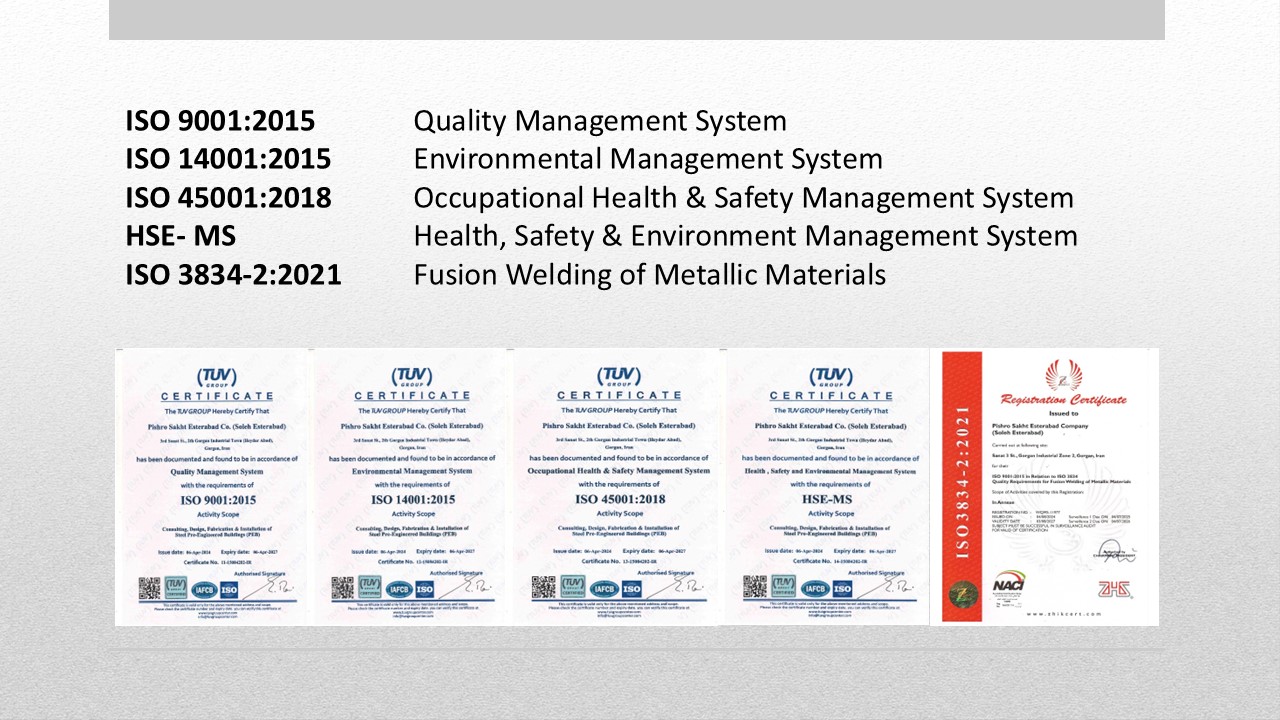 - گواهینامه ISO 9001 (مدیریت کیفیت)