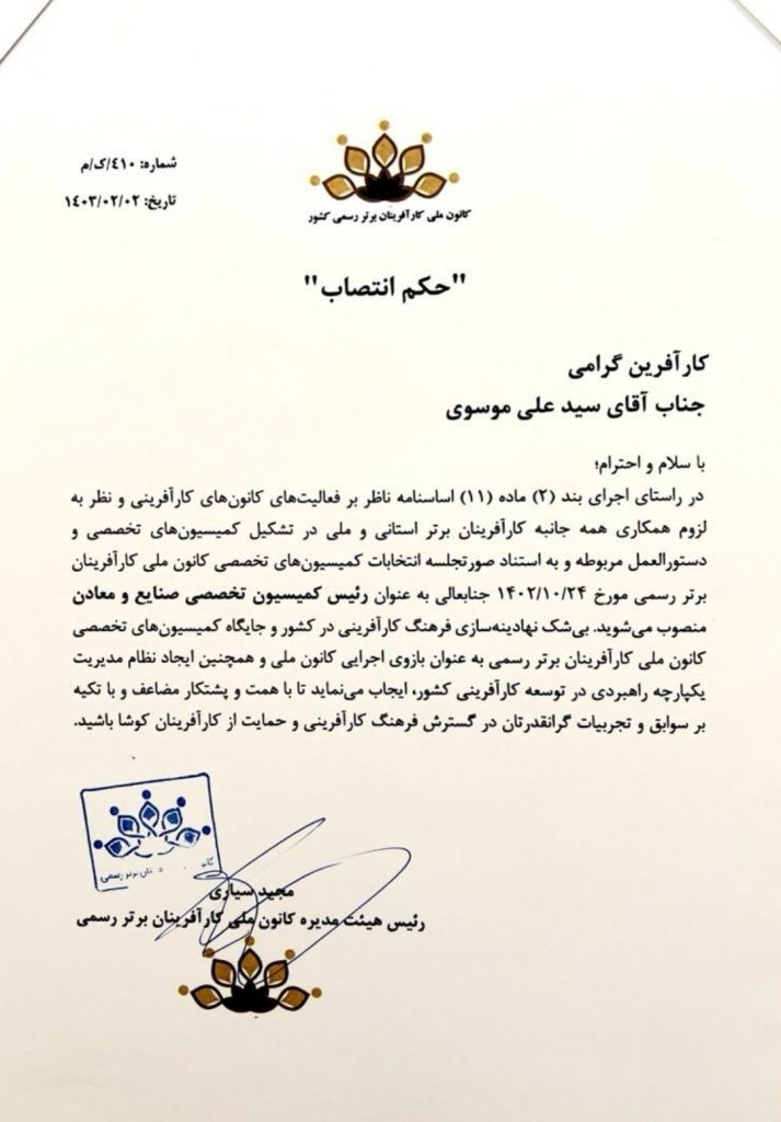 - گواهی عضویت انجمن تولید کنندگان و صادرکنندگان سازه های فولادی ایران