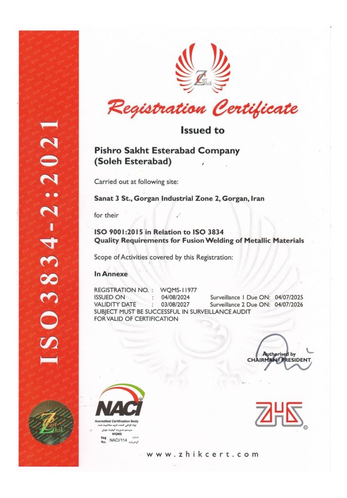 ISO 3834-2:2021 füzyon kaynağı metalik malzemeler